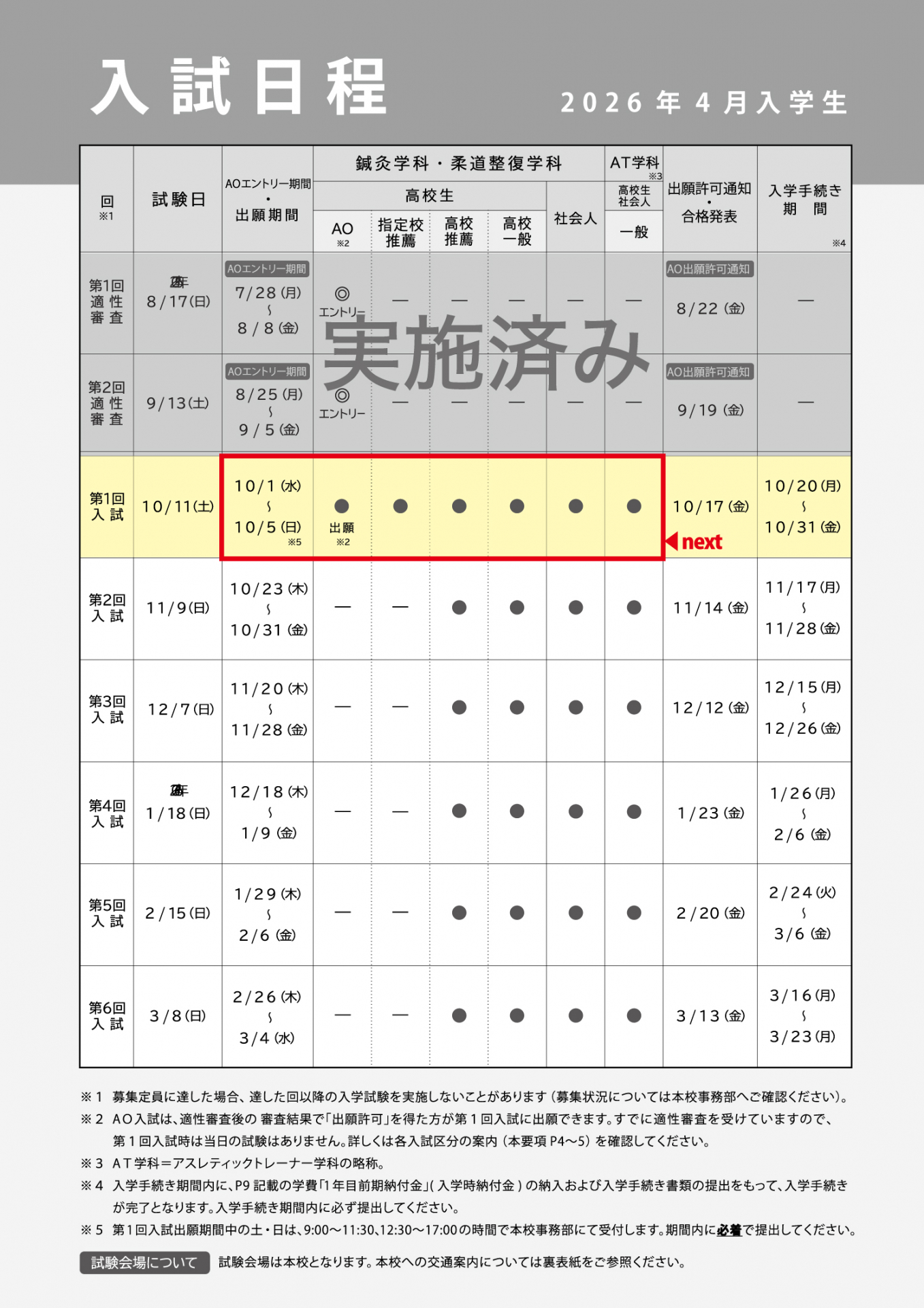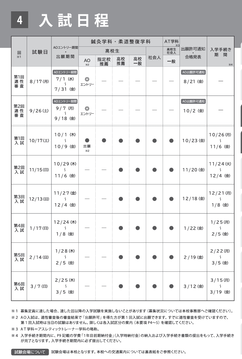 (※入試スケジュールの詳細は、入試日程をご確認ください。) |