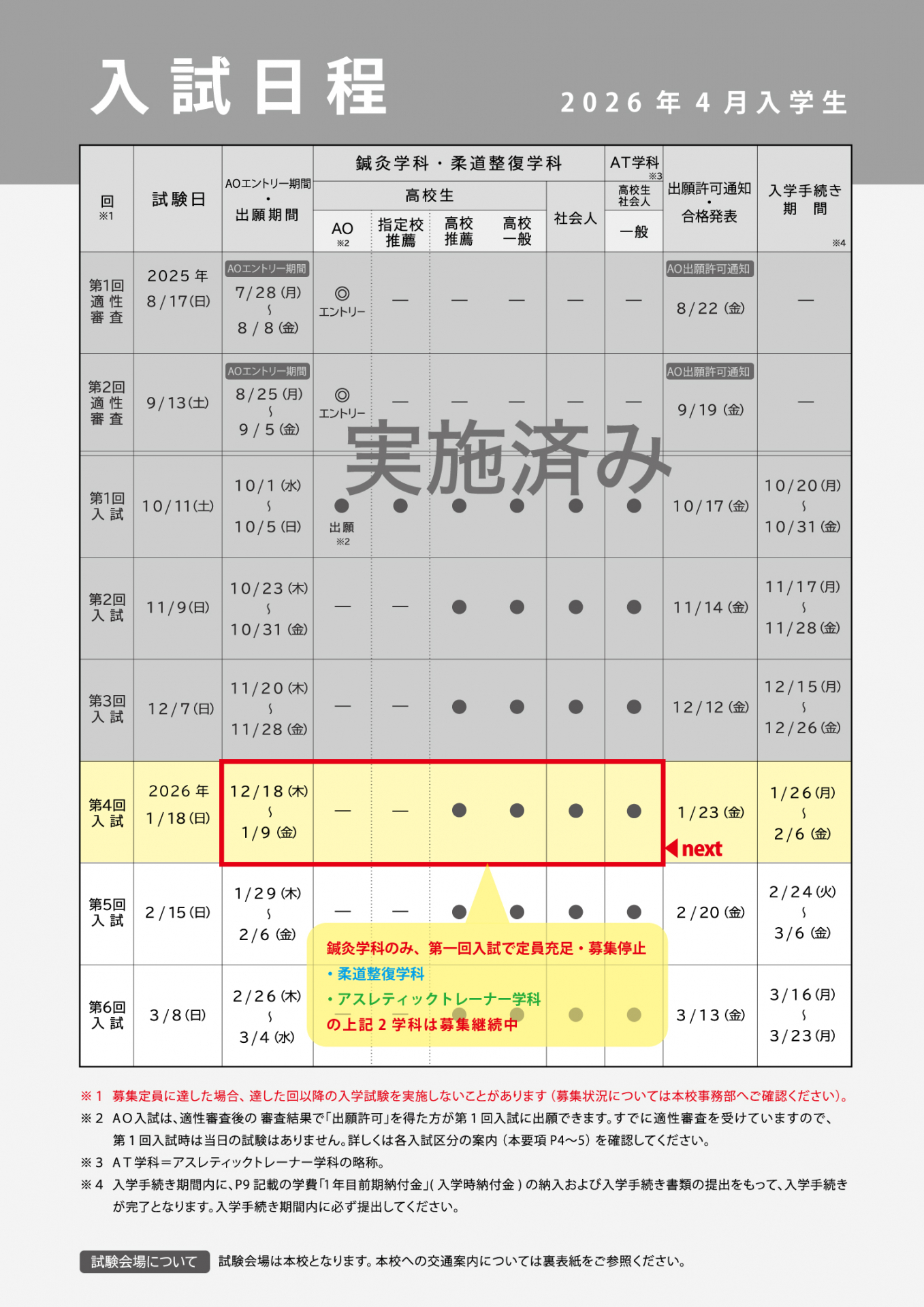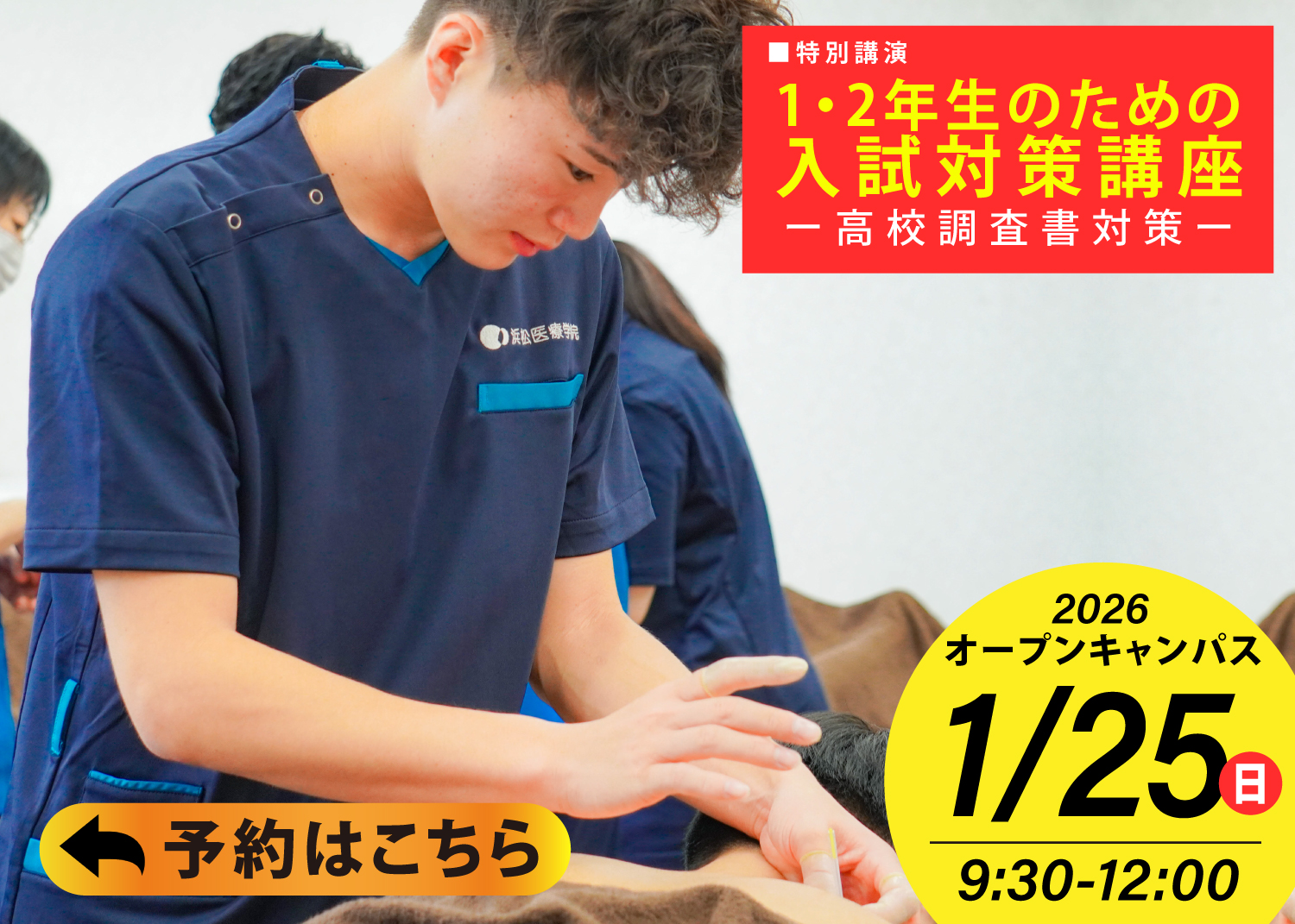 (※鍼灸学科につきまして、第1回入試で募集定員に達したため、2026年度 入学願書の受付を終了させていただきました。(2025年10月17日金曜日時点) 鍼灸学科をご希望の方は、2027年4月入学をご検討ください。)